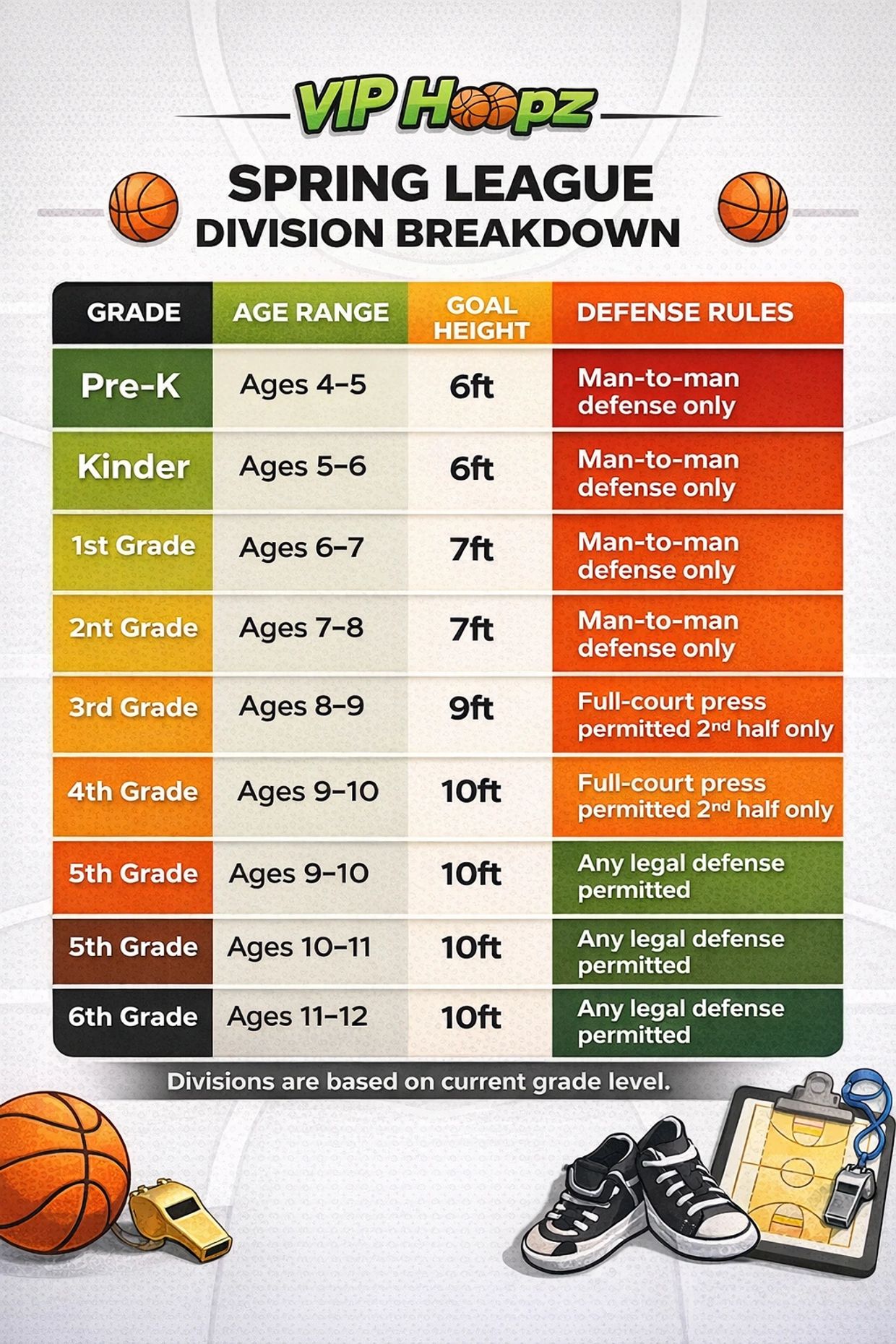 If you are unsure which division your child should register for, please contact VIP Hoopz before registering. We are happy to help guide families to the most appropriate placement.
